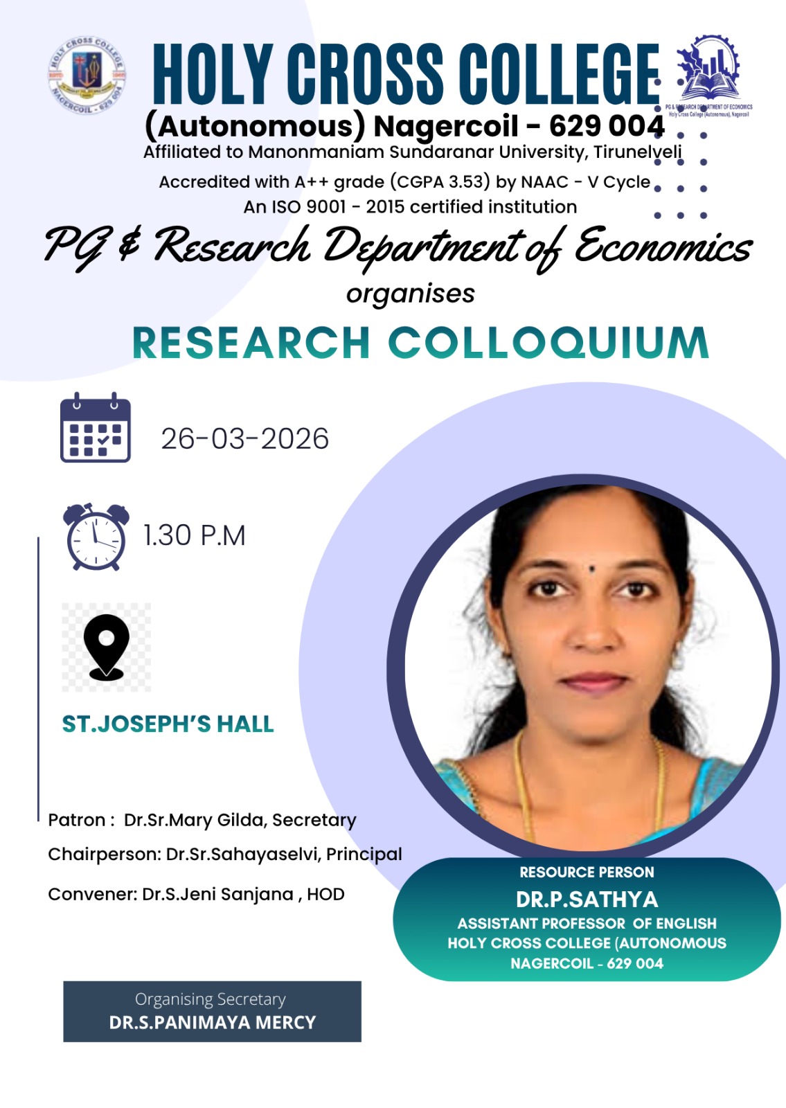 Holy Cross College was established in 1965 - the first women’s college in Kanyakumari district. It is a very prestigious college with a strong determination to empower women personally and professionally. I firmly believe that through education, women can fabricate an identity of their own. They can pursue their dreams and move ahead in their life with strong determination, respect, love, and faith. Under the efficient and committed management of the sisters of the Cross of Chavanod, the college continues to sow the seeds of education to women thereby nourishing them physically, emotionally, intellectually, spiritually, and socially.