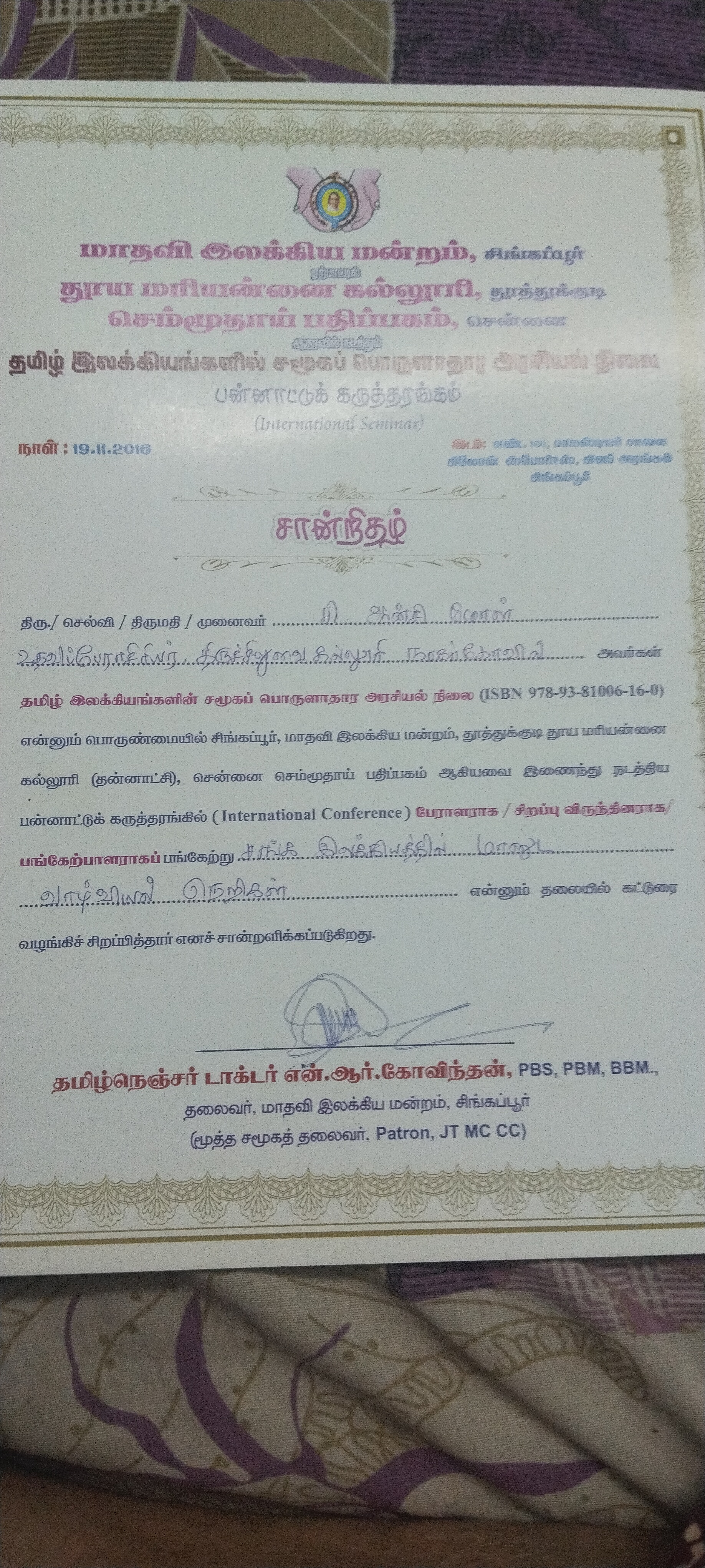 , E. J. Vishaka, M. PriyaDharshini, V. Shally and Sr. GerardinJayam, Materials Today Proceedings |