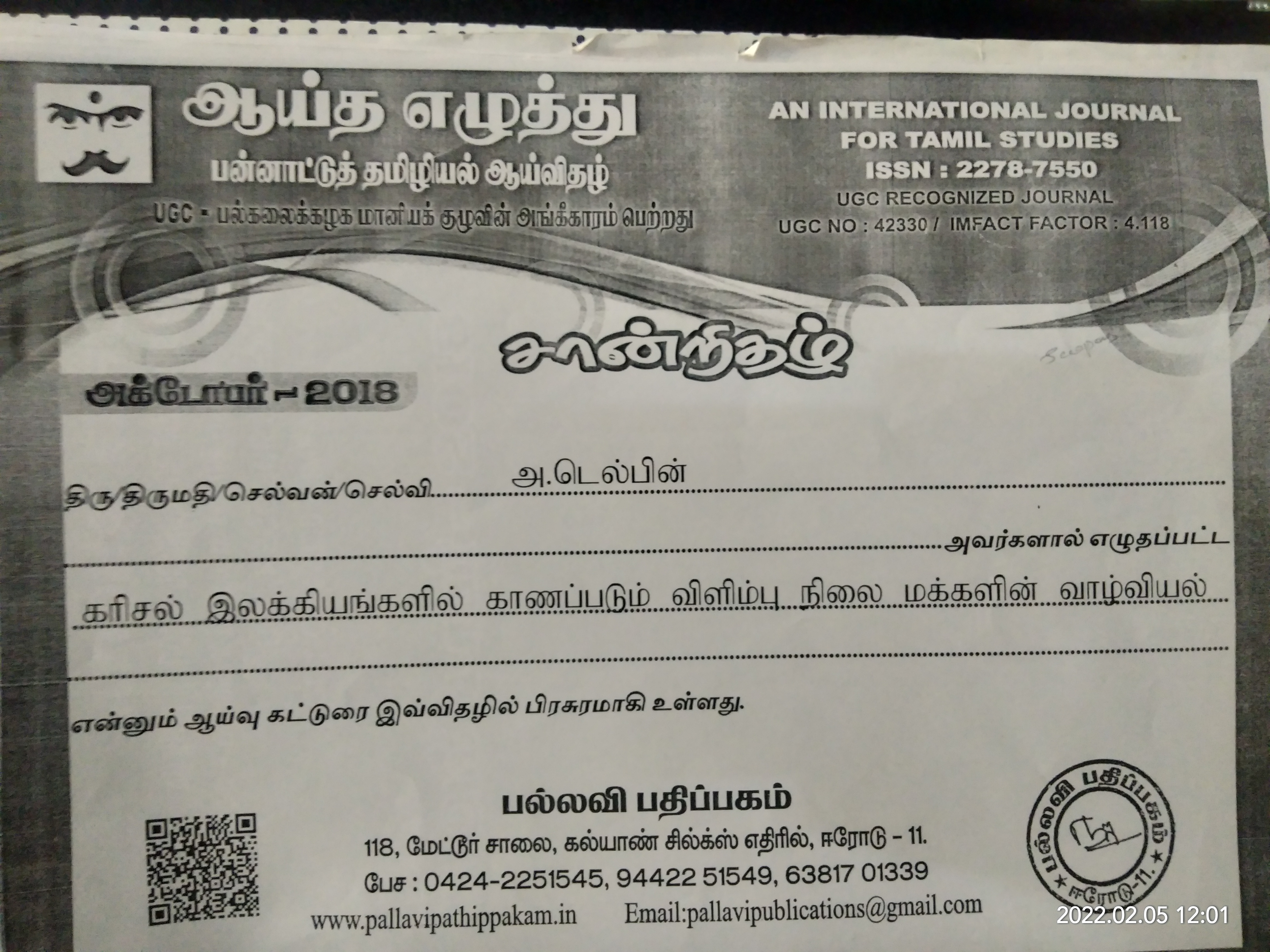Pandia Nadu Cultural Foundation In Association with Shanlax International Journal of Arts and Science and Humanities ( Nilam Journal) |