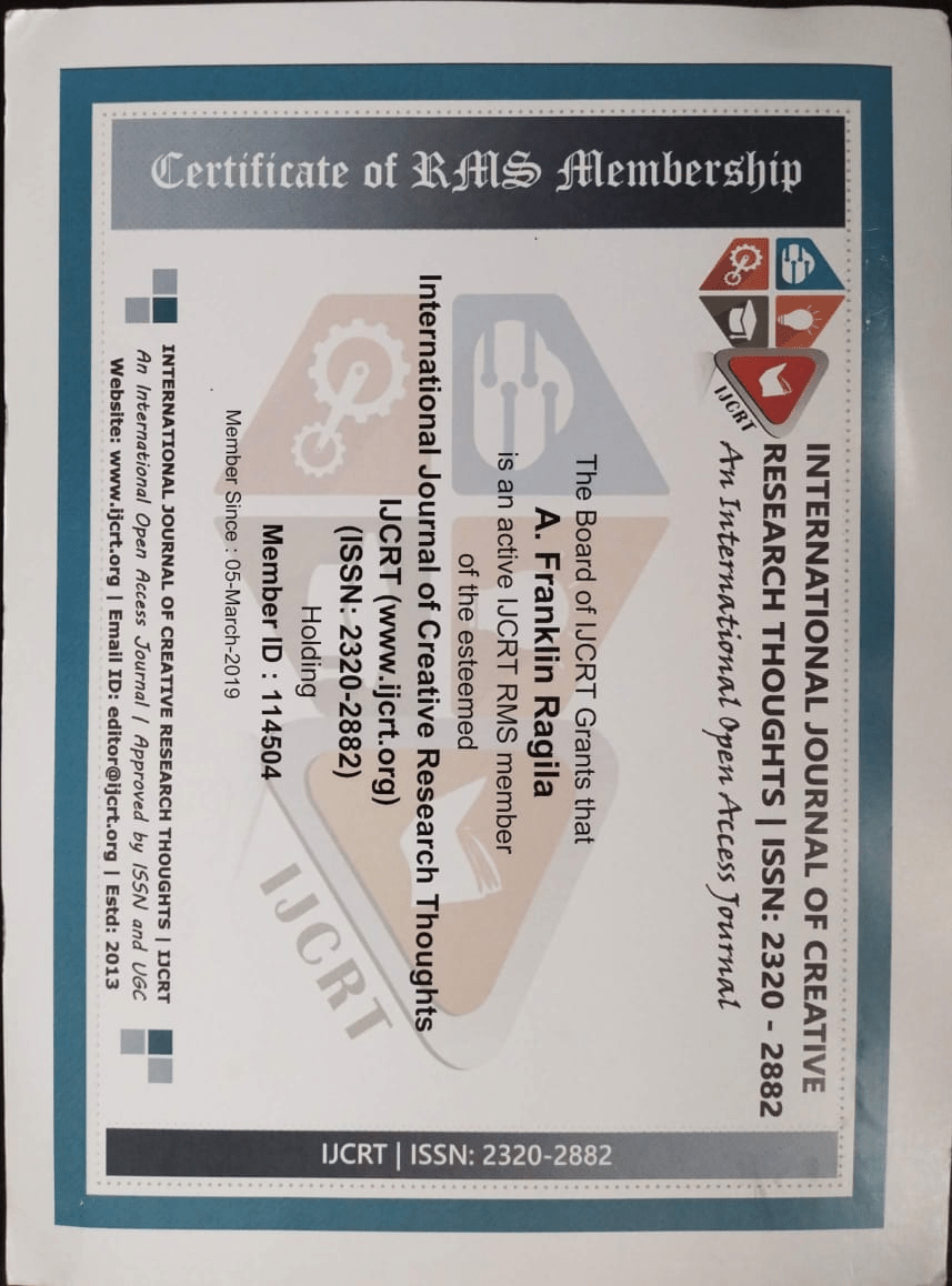 ASSOCIATION OF GLOBAL ACADEMICIANS AND RESEARCHERS (AGAR) Tamil Nadu, INDIA |
