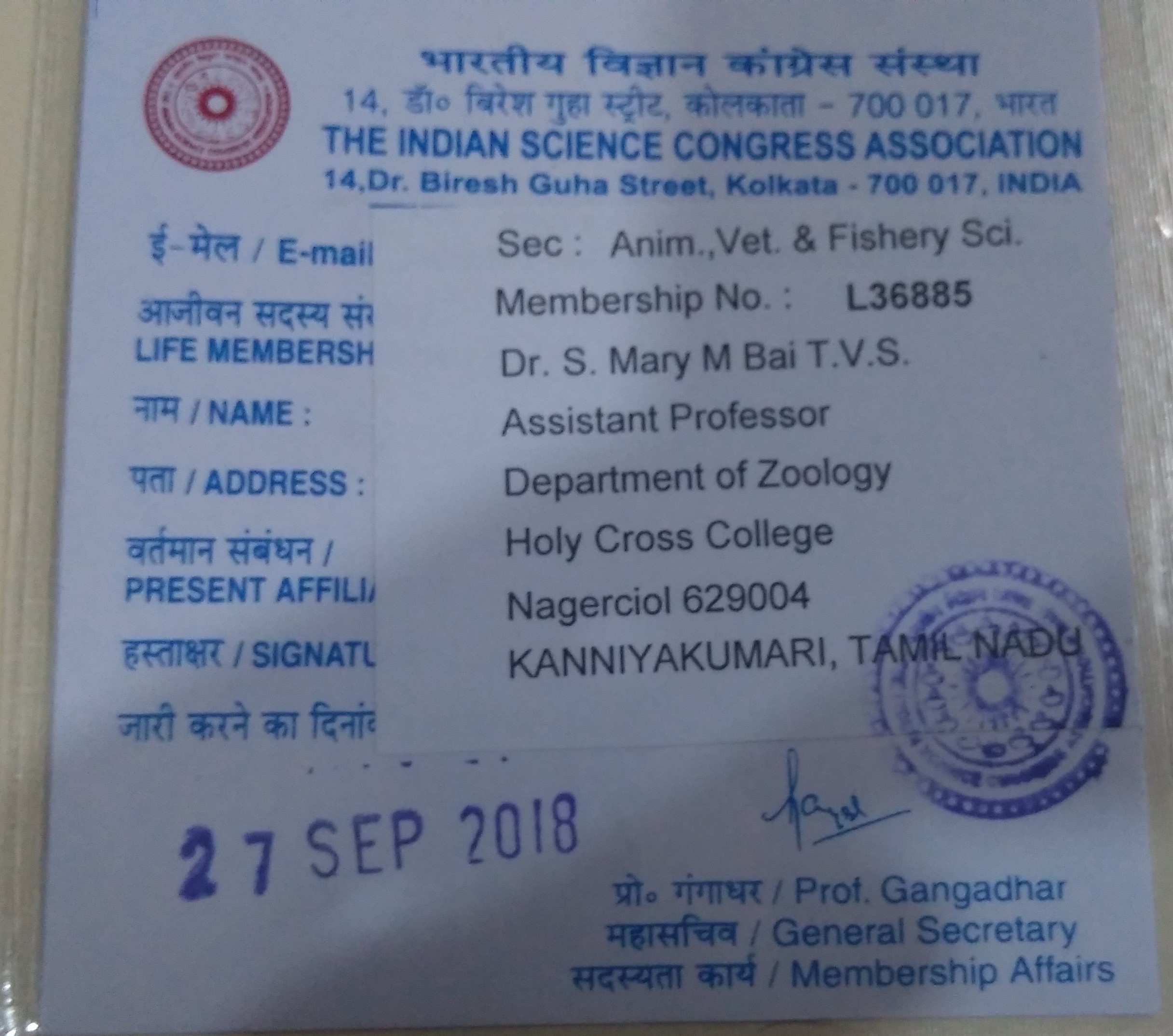 The Indian Science Congress Association - Sec. Anim., Vet. & Fishery Sci. |
